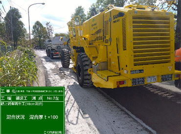 | 施工内容 | 延長L=240.0m 路面切削工(t=10cm)1930㎡ 路上路盤再生工(t=10cm)1930㎡ 基層工(t=5cm)1930㎡ 表層工(t=5cm)1930㎡ 雑工 1式 |