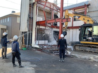 解体業者さんには振動や騒音、部材の飛散を抑えながら安全に作業を進めていただき無事解体工事が終了しました。