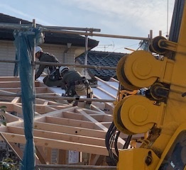 3月下旬からは建て方大工さんによる骨組み作業が始まりました。
