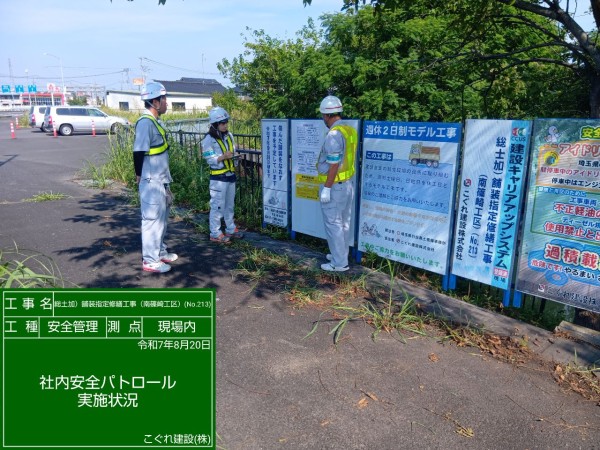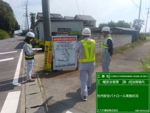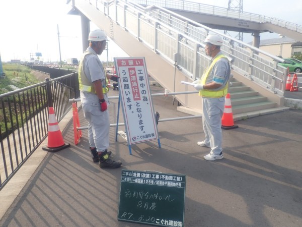 9月の上旬から間もなく本工事が始まります。工事が間近になってきましたので、規制看板や緊急時の連絡先等の取付状況を確認しました。