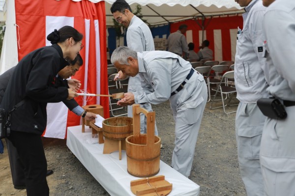地鎮祭が行われた10月7日は、暦上「大安」「建」「成」などの吉日であり、秋の収穫や安定を象徴する時期で、「実り」「繁栄」につながる季節的縁起が良い日だそうです。その通り、天候が穏やかで屋外儀式に最適の日となりました。