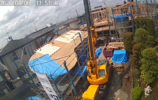 3月下旬からは建て方大工さんによる骨組み作業が始まりました。